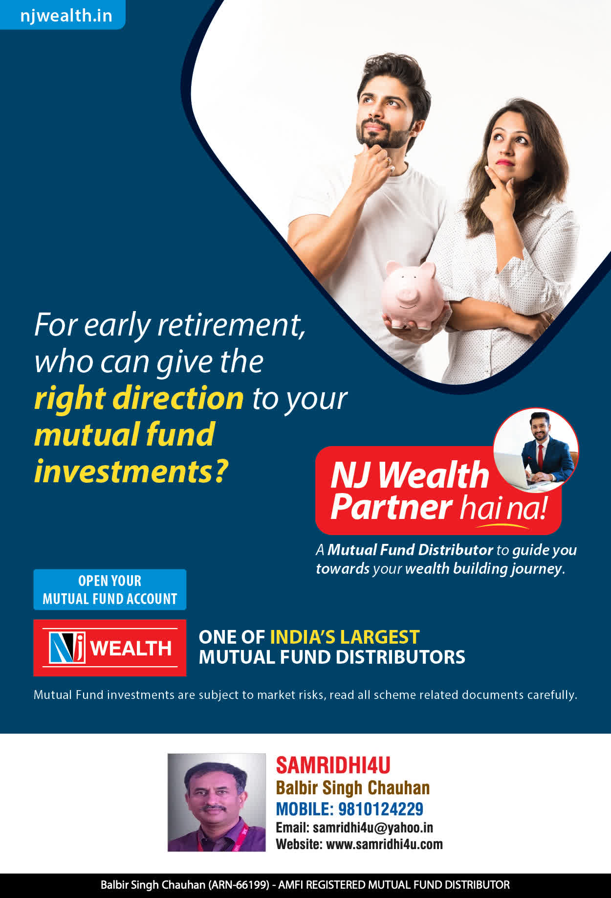 At, SAMRIDHI WEALTH our mission is to provide our clients with the best solutions in wealth creation and wealth management. We are driven to provide clients with simple, unbiased and uncluttered professiaonal advice that adds value to their quality of life and results in actionable solutions.
