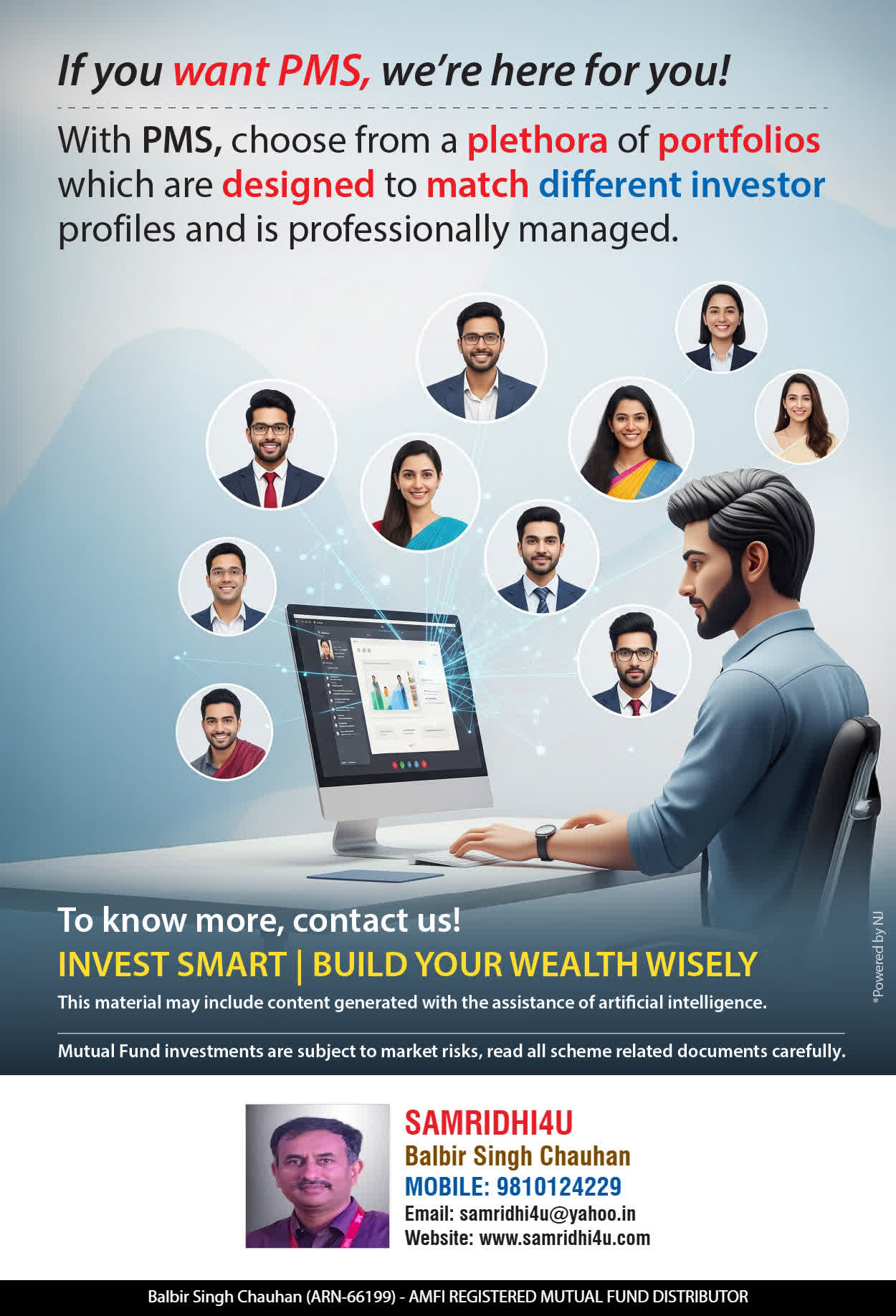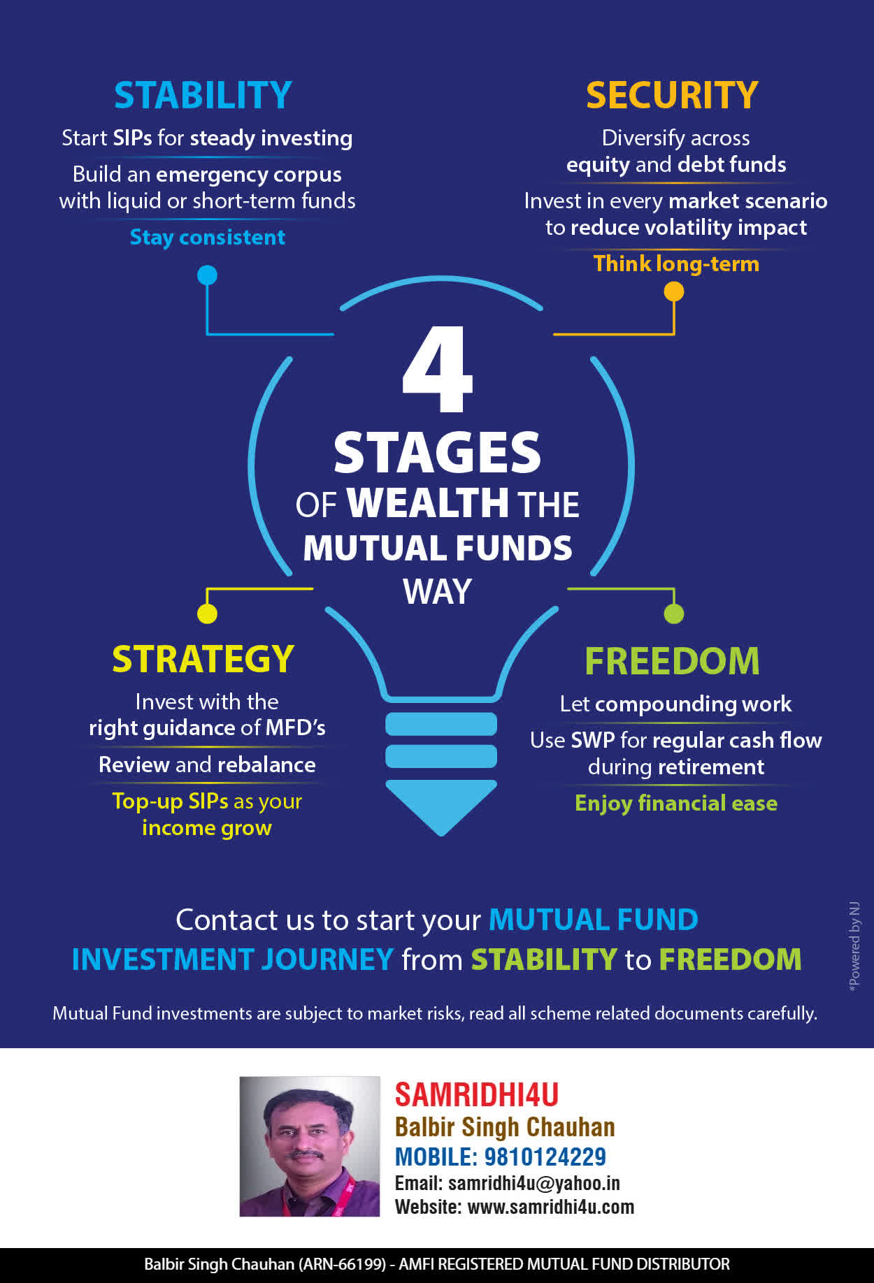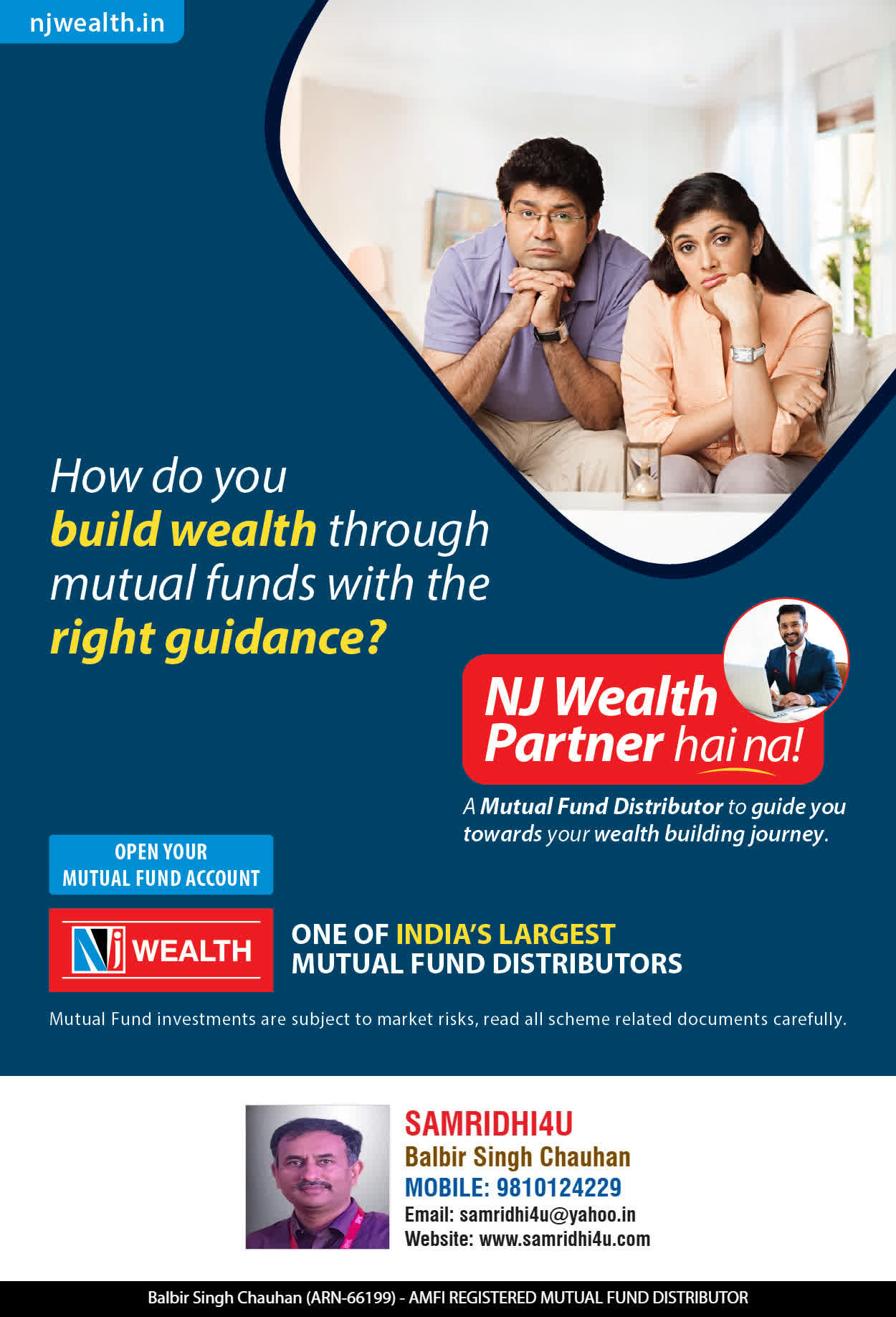 At, SAMRIDHI WEALTH our mission is to provide our clients with the best solutions in wealth creation and wealth management. We are driven to provide clients with simple, unbiased and uncluttered professiaonal advice that adds value to their quality of life and results in actionable solutions.